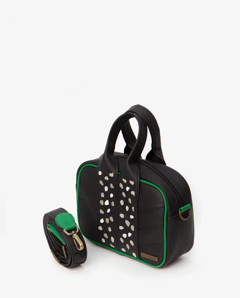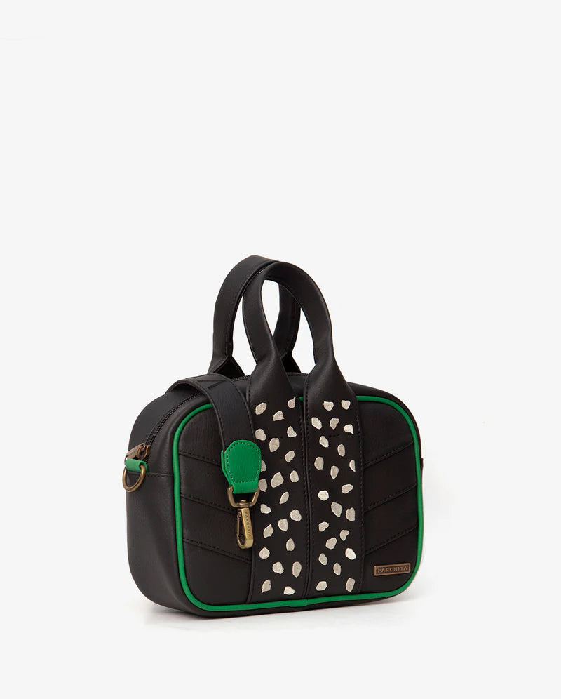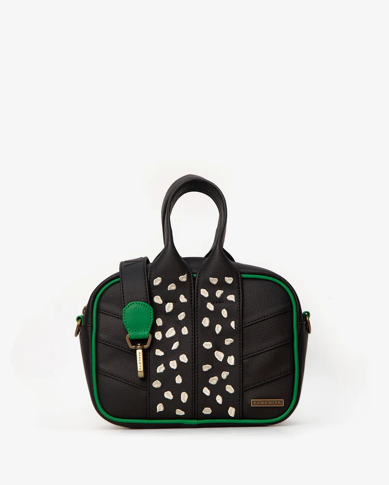 Es una bandolera pequeña y funcional, que cuenta con dos asas en pvc bordadas con manchas en contraste, strap removible... Leer más...