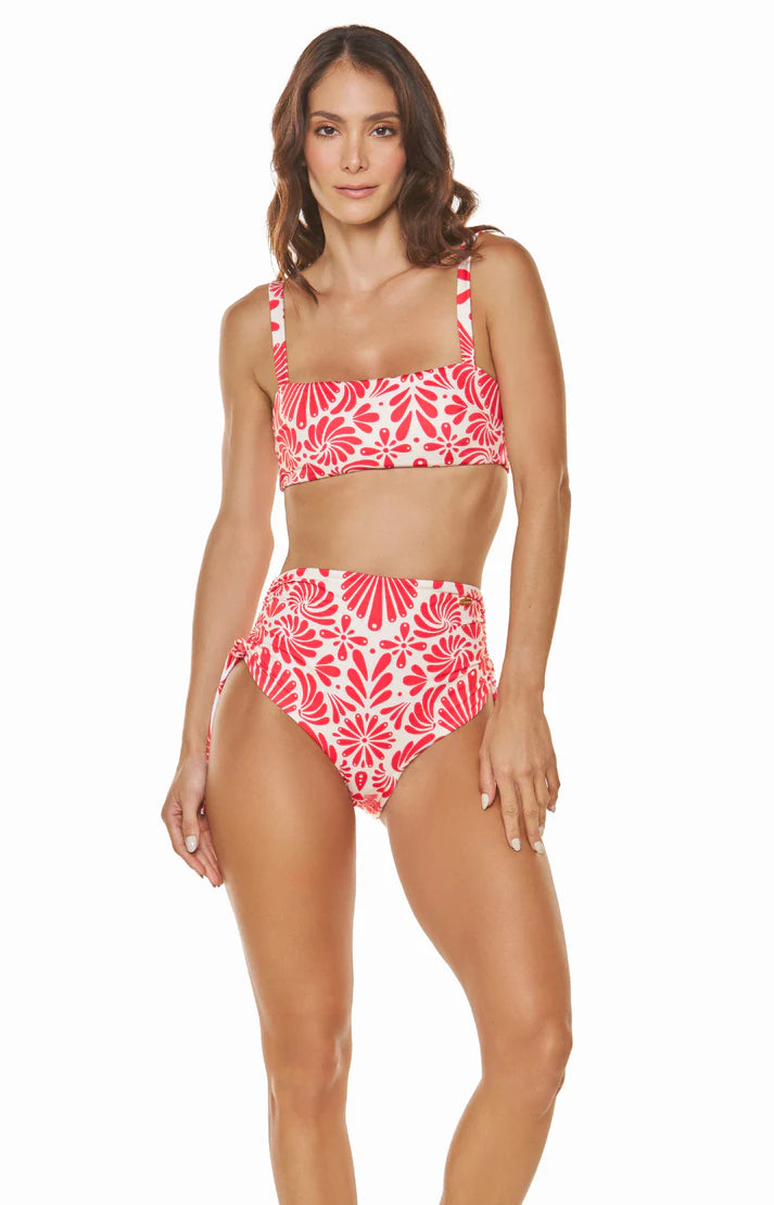 Vestido de baño tipo strapless en rojo estampado con conchas presenta un corte recto elegante. Cuenta con cargaderas fijas y... Leer más...