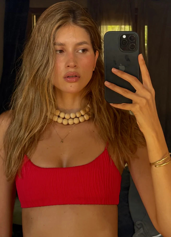 Redefine tu estilo de playa con el solid crimson heat aldara top, un top de bikini tipo bandeau en un... Leer más...