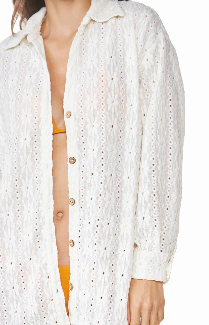 Esta elegante camisa larga blanca de manga larga en tela bordada Isquia combina sofisticación y comodidad. Con botones frontales y... Leer más...