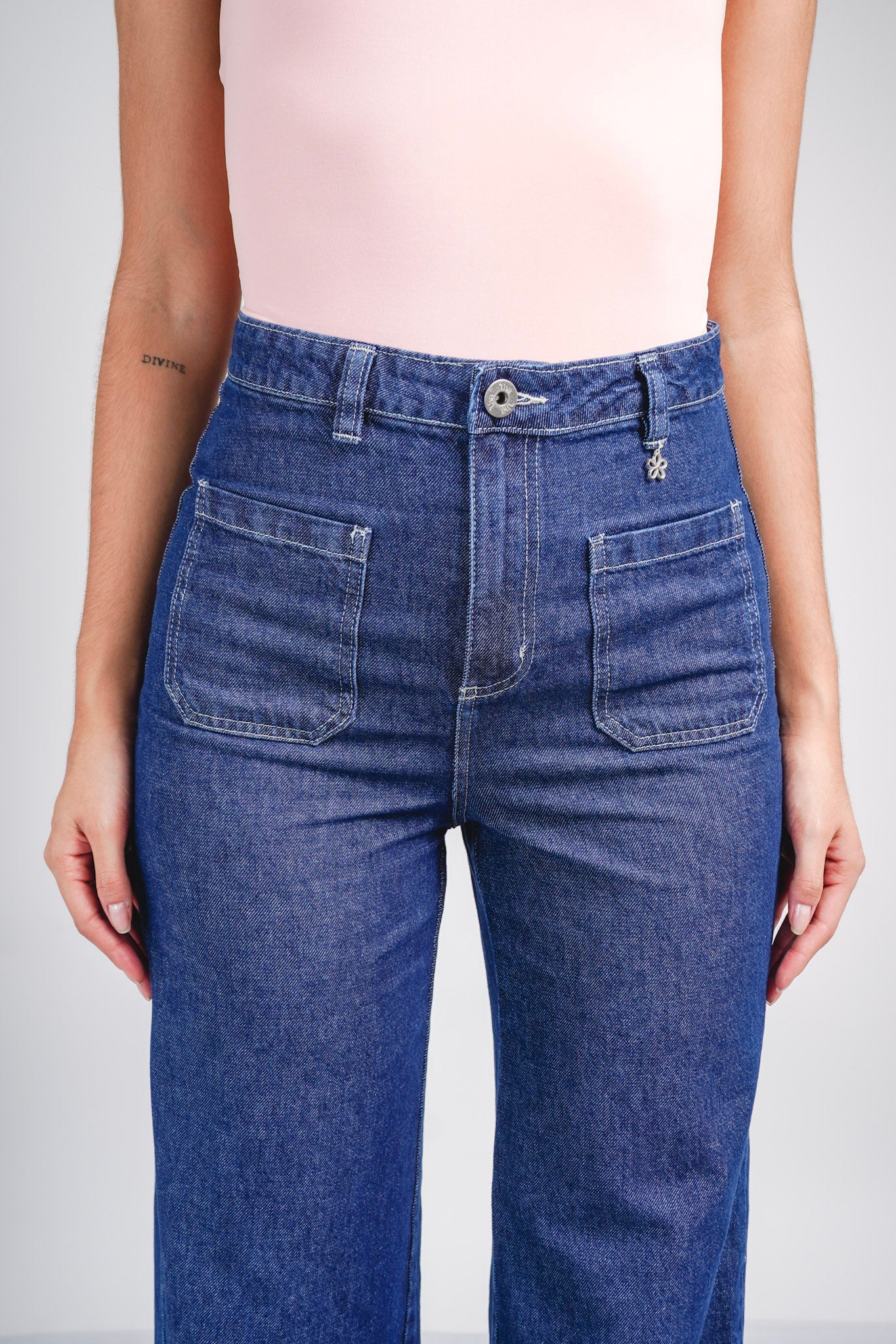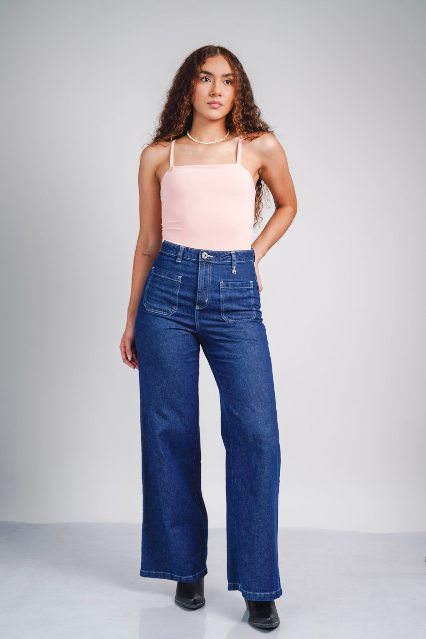 Pantalón color denim con bolsillos delanteros y traseros, diseñado con una bota ancha que aporta un toque moderno y favorecedor.... Leer más...