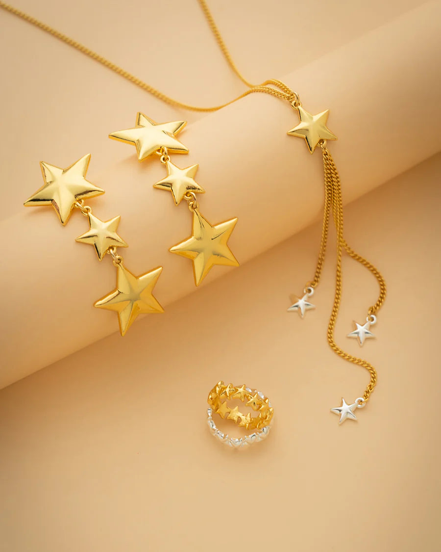 Collar Estrellas Bicolor + Aretes