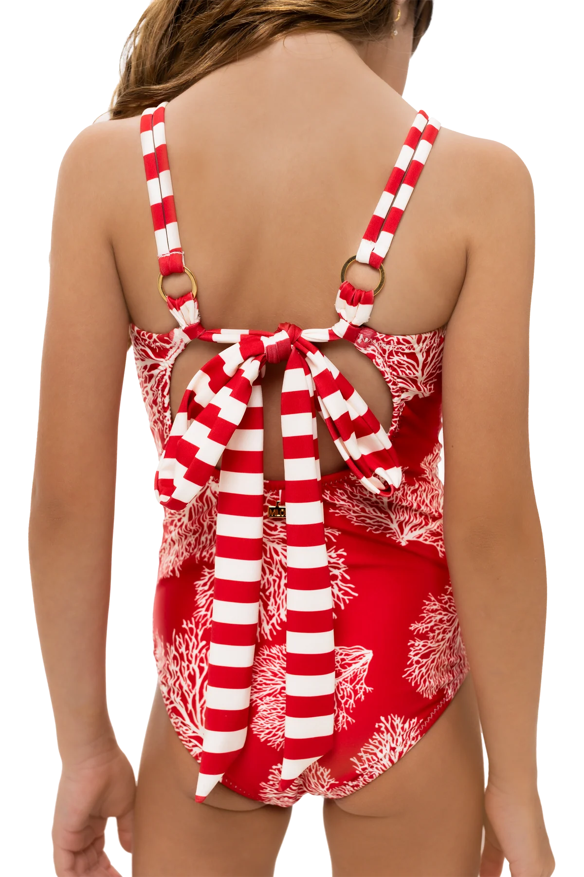 Entero, traje de baño infantil con estampado colorido, manga larga y amarre en la espalda. Diseño de cobertura media ideal... Leer más...