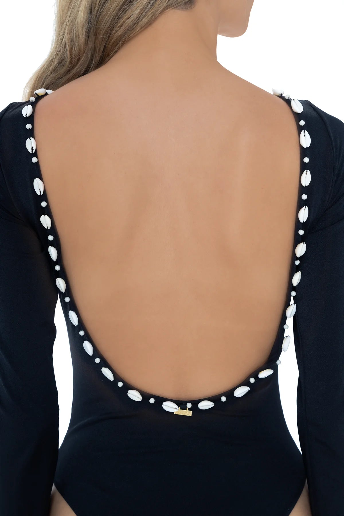 Vestido de baño / Entero, traje de baño de una pieza con manga larga y escote profundo en la espalda, decorado con... Leer más...