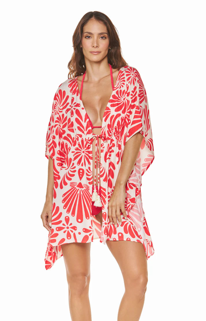 Este kimono corto rojo con estampado de conchas combina elegancia y comodidad, ideal para complementar tu look de playa. Fabricado... Leer más...