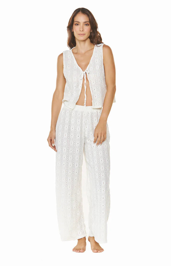 Este pantalón playero largo blanco en tela bordada Eagle combina elegancia y comodidad, ideal para usar como salida de playa... Leer más...