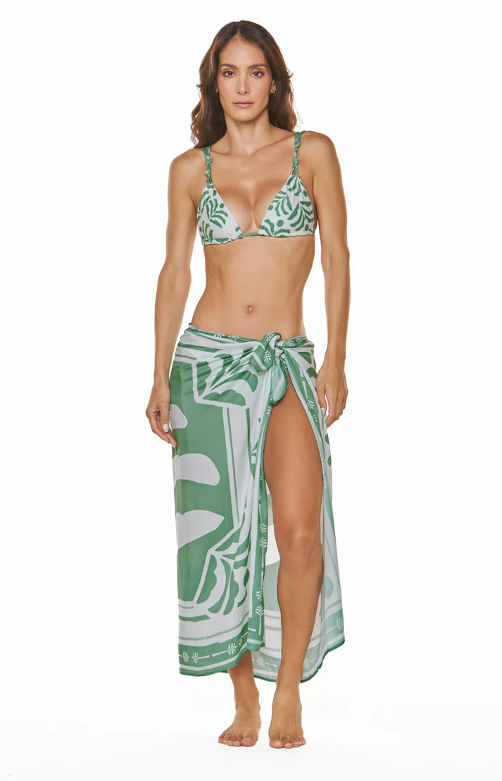 Este pareo largo en tono verde estampado, confeccionado en tela semisatinada, destaca por su suavidad y ligereza excepcionales. Su diseño... Leer más...
