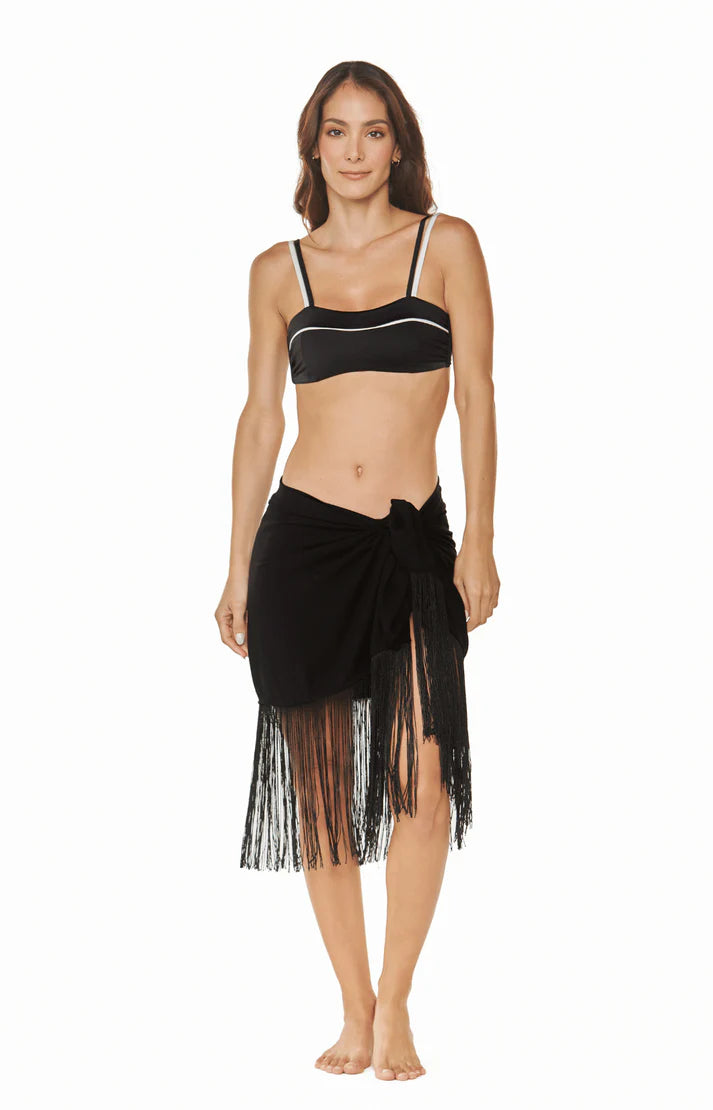 Este pareo corto en negro, confeccionado con tela fresca y ligera, ofrece una sensación de comodidad excepcional en climas cálidos.... Leer más...