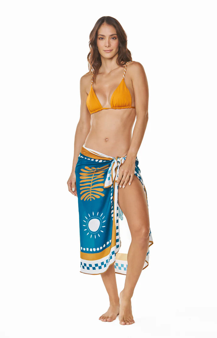Este pareo largo en tono azul turquesa, elaborado con tela semisatinada suave y ligera, ofrece múltiples formas de uso para... Leer más...