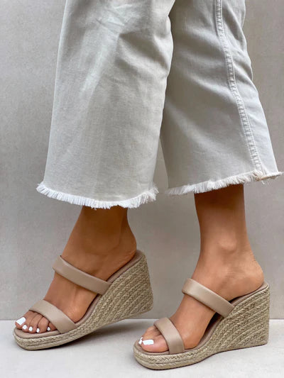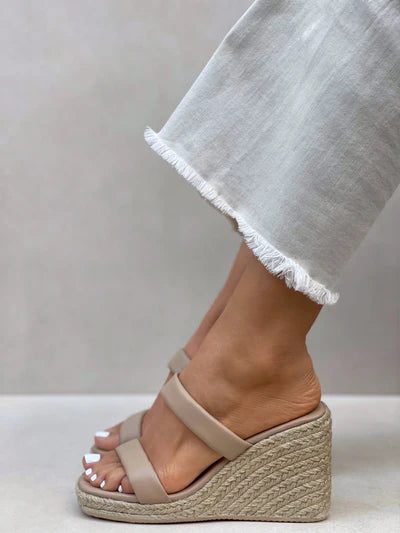 Descripcion Sandalias de cuña en tono capuchino, con un diseño fresco y elegante perfecto para la temporada de calor. Cuentan... Leer más...