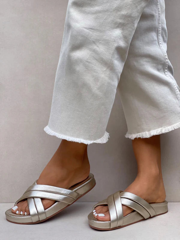 Descripcion Sandalias de diseño moderno y elegante,color plata que aporta un toque sofisticado a cualquier look. Cuentan con tiras cruzadas... Leer más...