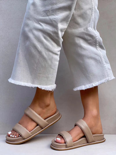 Descripcion Sandalias de estilo minimalista y cómodo, elaboradas en tono beige neutro que combina fácilmente con cualquier outfit. Presentan dos... Leer más...