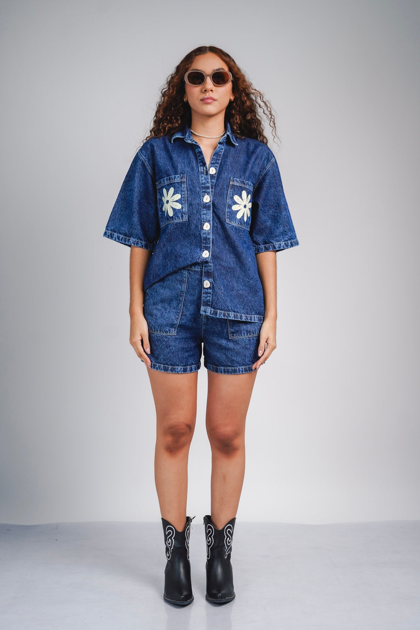 Set de camisa y short en denim azul, ideal para un look fresco y actual.La camisa de manga corta presenta... Leer más...