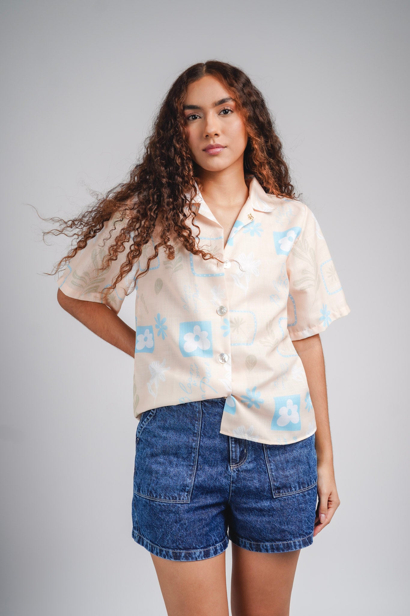 Destaca tu estilo con esta camisa para dama de manga corta, diseñada con un estampado fresco y femenino en tonos... Leer más...